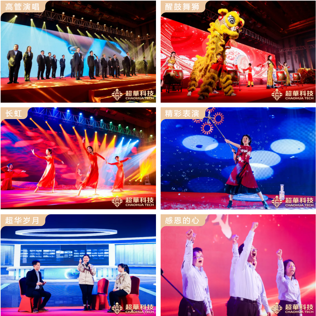 在晚宴期間,還開展了豐富多彩的文藝演出,醒獅鼓振奮人心,舞獅子神采奕奕,整個(gè)氣氛熱烈歡騰,意示著2022年超華科技虎虎生風(fēng)。而《眾人劃槳開大船》的節(jié)目,各位高管演唱熱情非常,把整個(gè)慶典的氣氛推向了高潮。熱辣的舞蹈串燒,帶動(dòng)了現(xiàn)場的歡快氛圍,《長虹》節(jié)目的震撼,讓人嘆為觀止,更寓意著公司股票長紅,高升不斷。最后由員工代表演唱的《感恩的心》,更是表達(dá)了全體員工與公司的深厚感情,為現(xiàn)場新添了溫馨的氛圍。